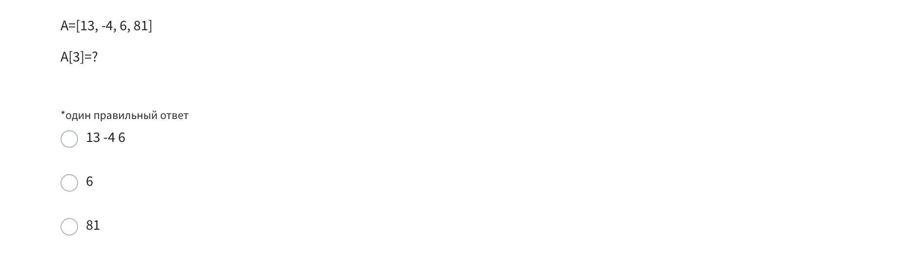 - Отсчет в программировании мы начинаем с 0, а не с 1, поэтому элемент с индексом 3 будет являться 4-тым элементом в нашем списке.