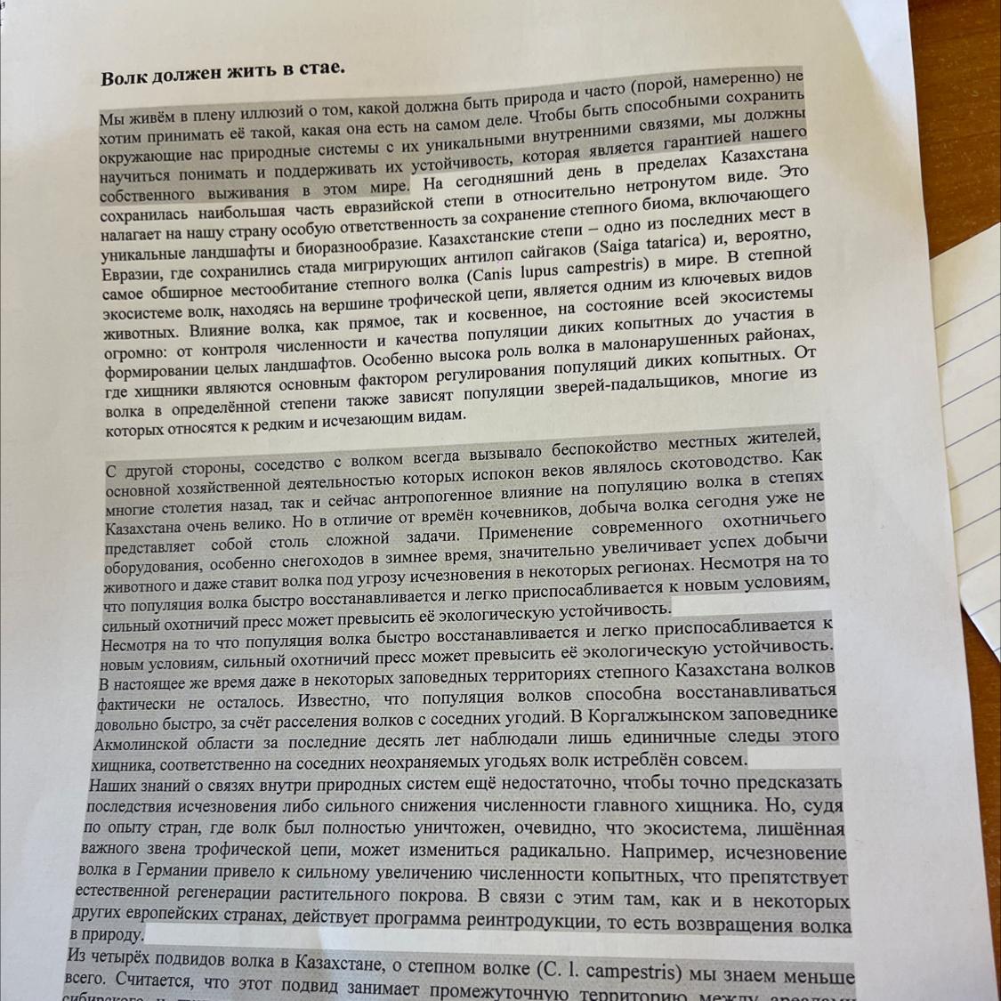 1. Автор поднимает проблему об исчезновениях главных хищников-волков. Исчезновение волков приводит к серьезным последствиям для природы.