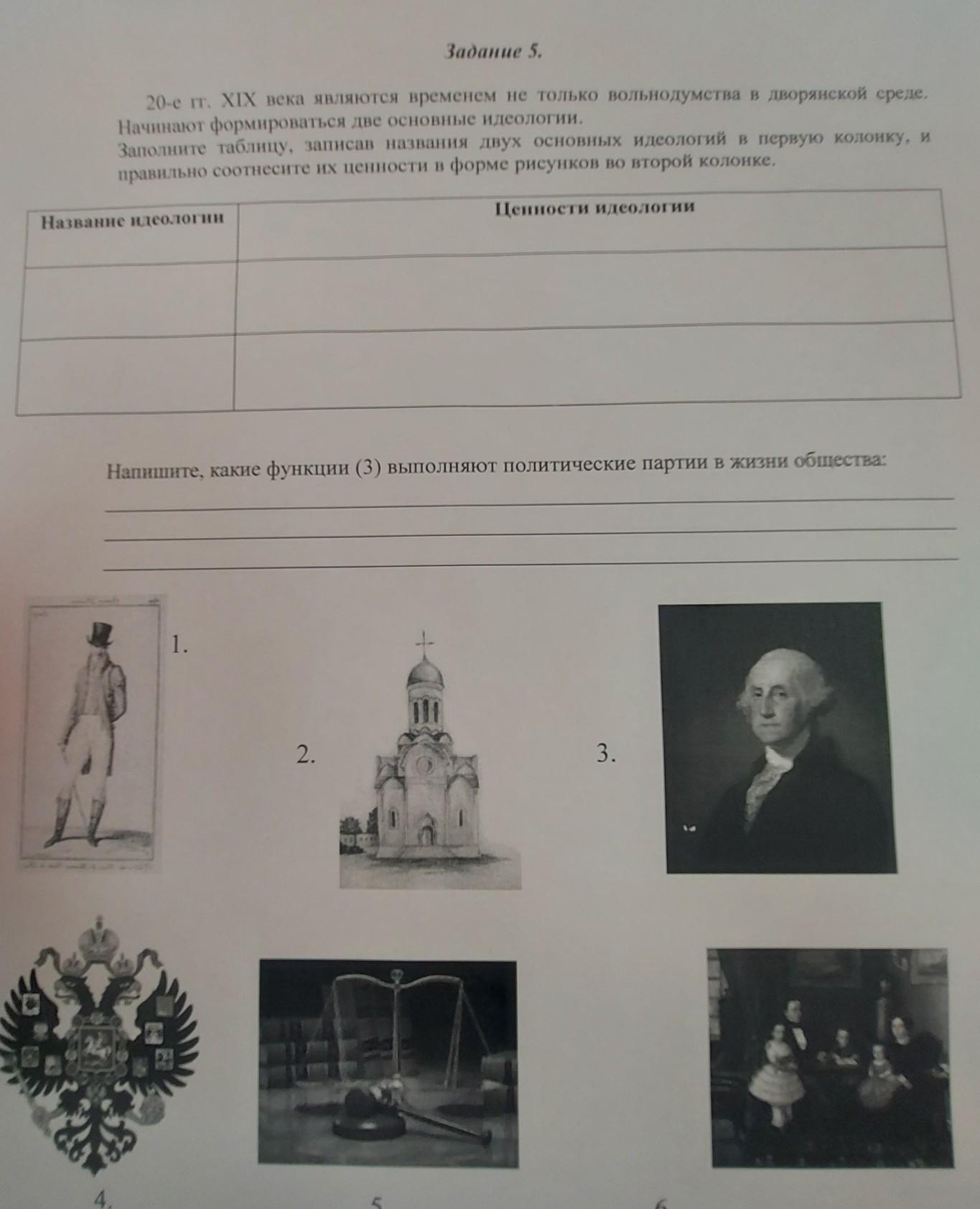 20-е гг. XIX века являются временем не только вольнодумства в дворянской среде. Начинают формироваться две основные идеологии. Заполните таблицу, записав названия двух основных идеологий в первую колонку, и правильно соотнесите их ценности в форме рисунков во второй колонке. Название идеологии Ценности идеологии