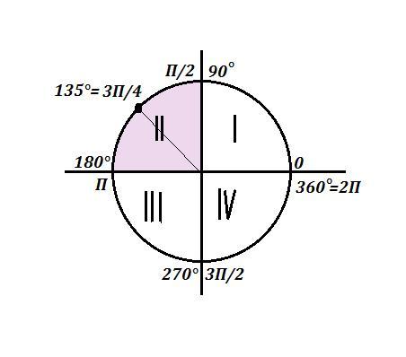 Этот угол принадлежит 2-ой четверти, так как в этой четверти углы