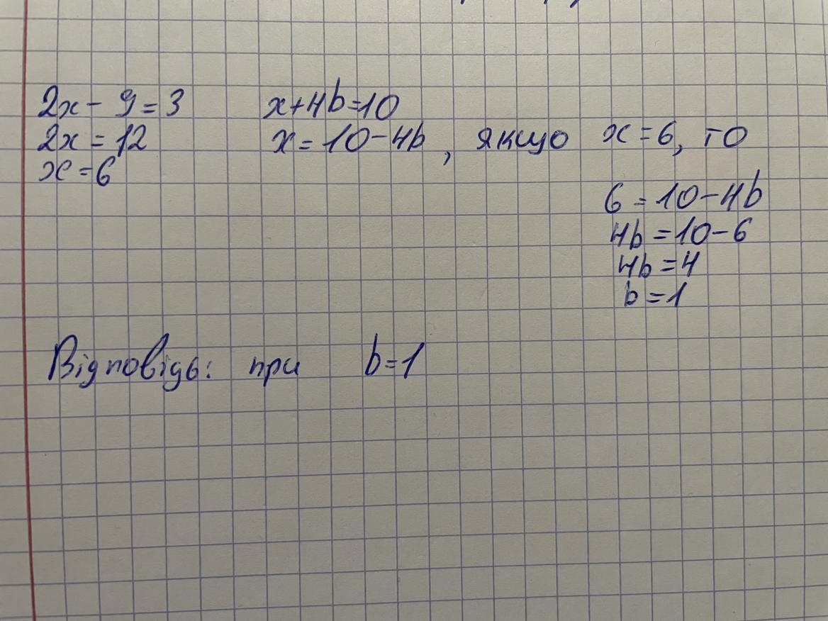 1. При каком значении ь уравнения будут равносильными: 2x - 9 = 3 и x+ 4b = = 10? (Даю 30 баллов )