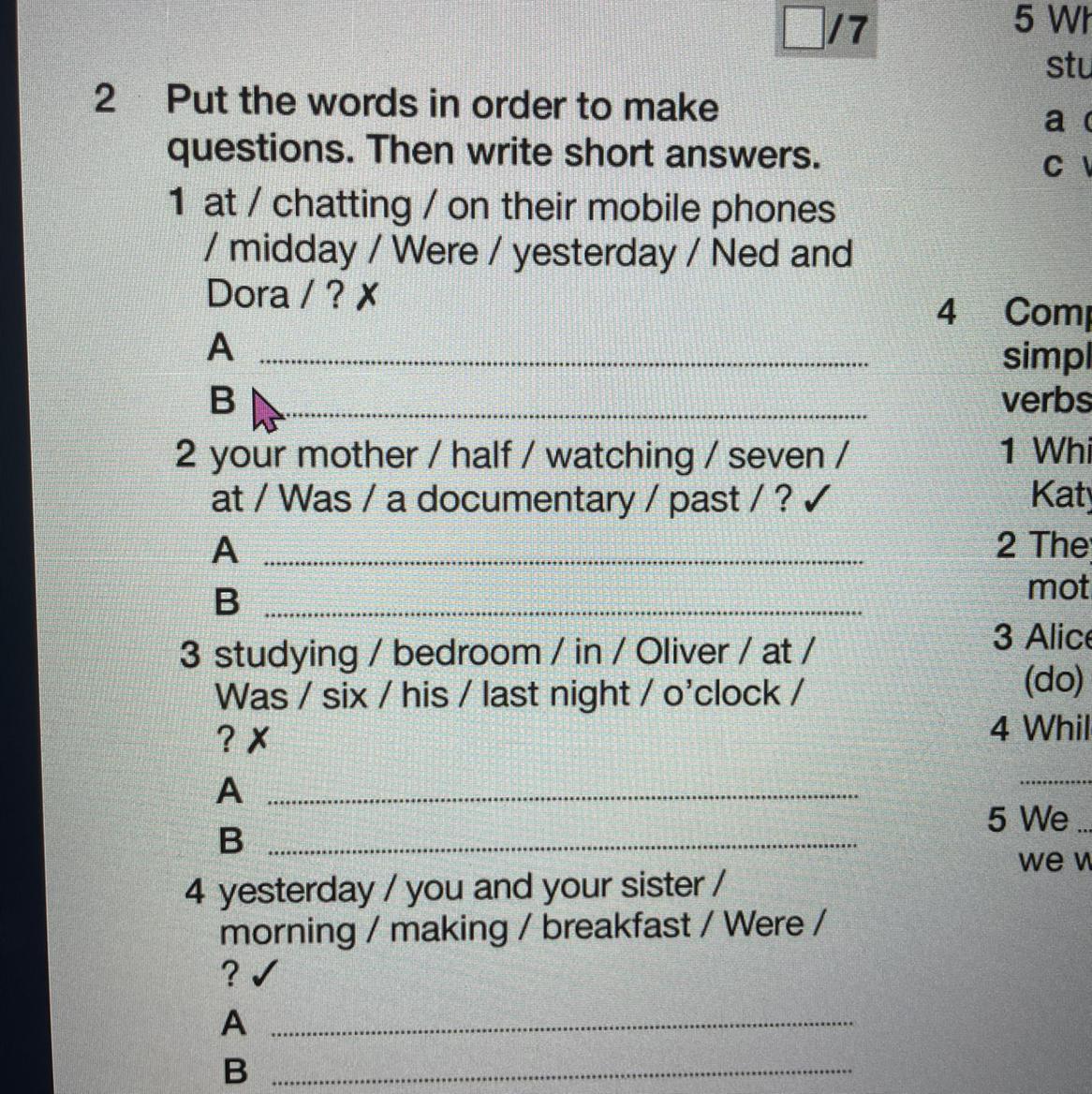 3. Was Oliver studying in his bedroom last night at six o'clock?