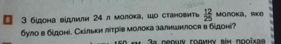 8 3 бiдона відлили 24 л молока, що становить 23 23 молока, яке було в бідоні. Скільки літрів молока залишилося в бідоні?