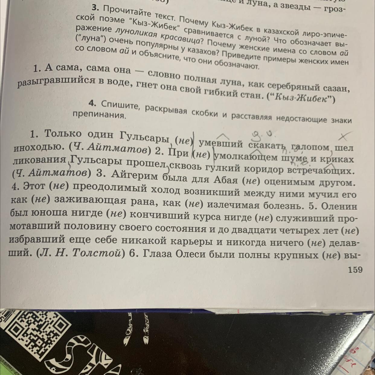 1. Только один Гульсары, неумевший скакать галопом, шел 9.0 иноходью. (Ч. Айтматов) 2. При неумолкающем шуме и криках ликования, Гульсары прошел сквозь гулкий коридор встречающих. (Ч. Айтматов) 3. Айгерим была для Абая неоценимым другом. 4. Этот непреодолимый холод, возникший между ними, мучил его как незаживающая рана, как неизлечимая болезнь. 5. Оленин был юноша нигде не кончивший курса, нигде не служивший, промотавший половину своего состояния и до двадцати четырех лет не избравший еще себе никакой карьеры и никогда ничего не делавший. (Л. Н. Толстой) .