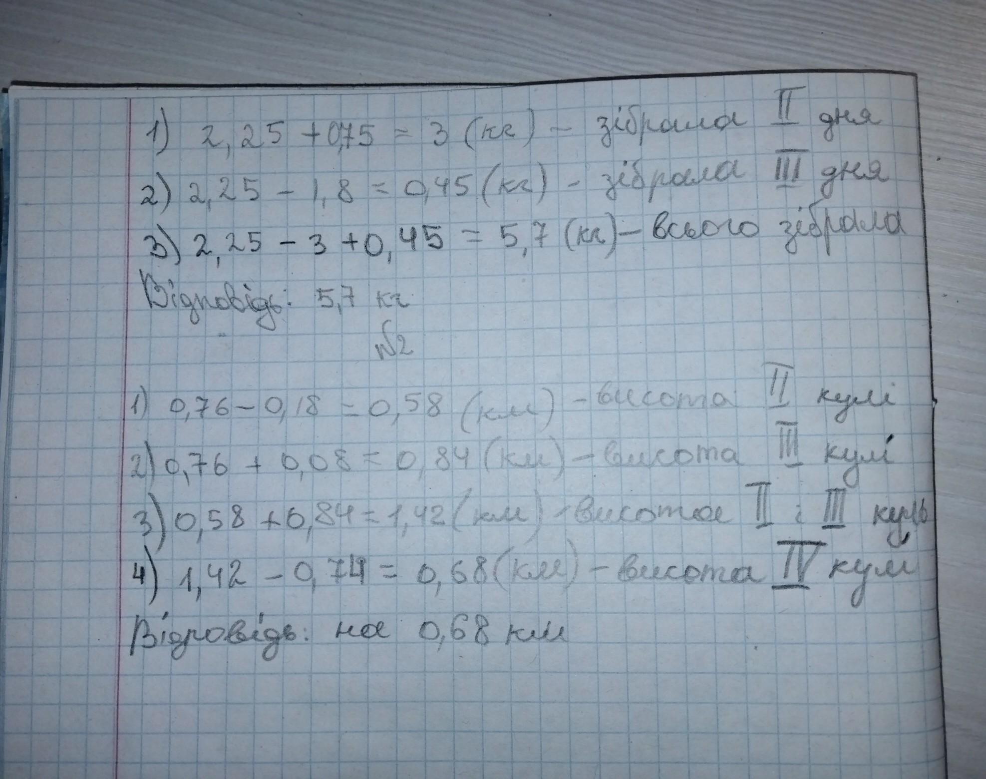 Перша куля піднялася на висо- ту 0,76 км, що на 0,18 км більша за висоту, на яку піднялася друга куля, i на 0,08 км менша від висоти, на яку піднялася третя куля. Четвер- та куля піднялася на висоту, що на 0,74 км менша, ніж сума висот, на які піднялися друга і третя кулі. На яку висоту піднялася четверта куля?