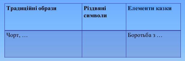 Елементи казки: боротьба з чортами,повернення вкраденої зірки.