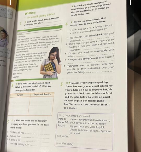 Marzhan states that Danija should try sitting with different people at lunch. He should not be shy and start small talks.