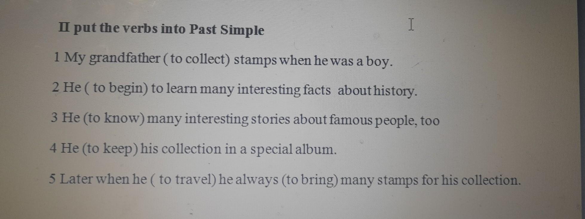 5 Later when he (to travel) he always (to bring) many stamps for his collection.