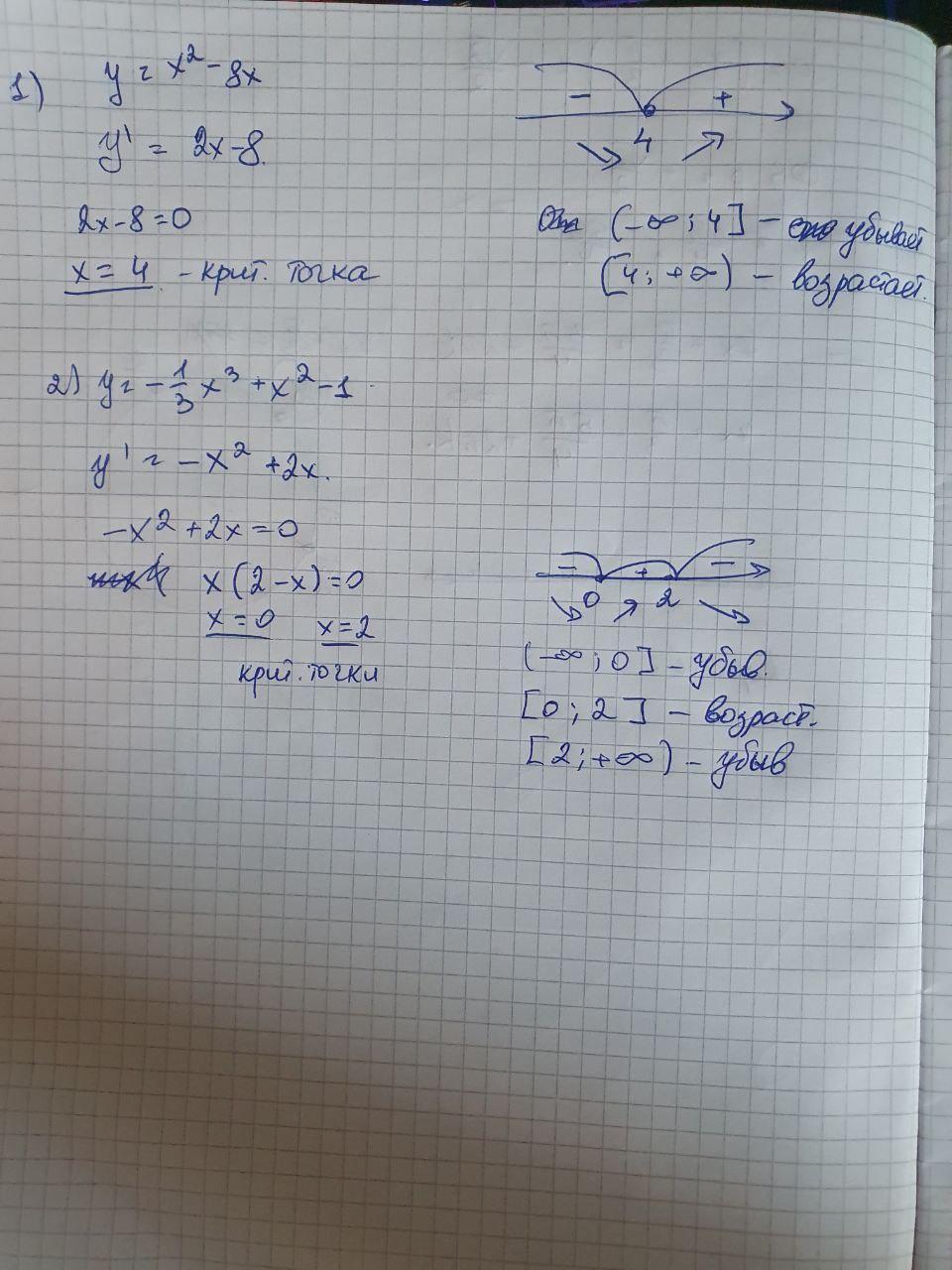 Найдите интервалы возрастания и убывания функции: a) y = x² - 8x б) y = -1/3 * х³ + x² - 1