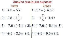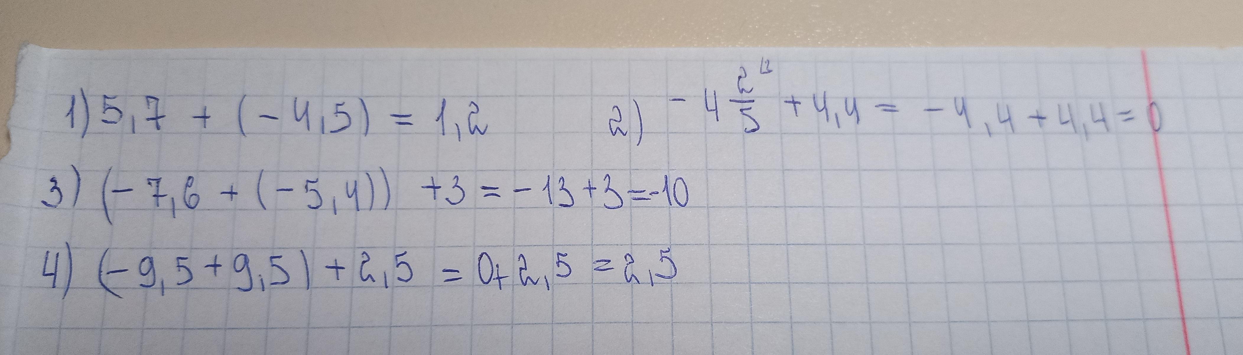 1) 5,7 + (-4,5) = 5,7 - 4,5 = 1,2