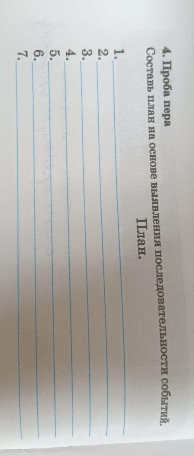 4. Проба пера Составь план на основе выявления последовательности событий. План. 1. 2. 3. 4. 5. 6. 7.