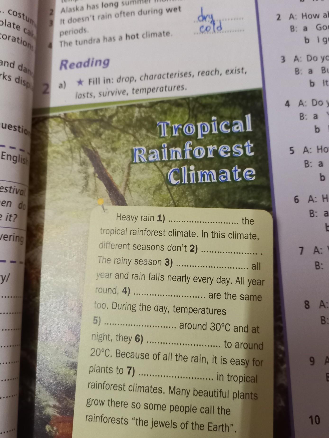 characterises, exist, 3 lasts, temperatures, 5 reach, drop, survive