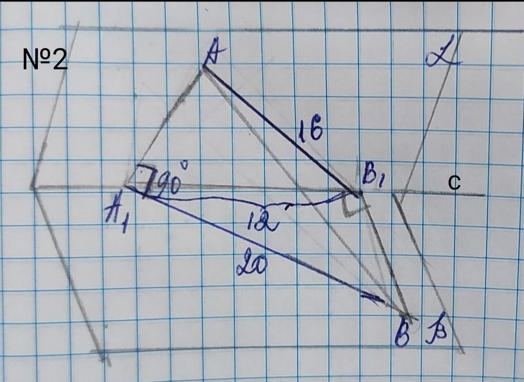 плоскости α и β пересекаются по прямой с ; т.А ∈ α; т.В ∈ β; АА₁⏊ с; ВВ₁⏊ с; проекция А₁В=20 см; проекция АВ₁=16см; А₁В₁=12см