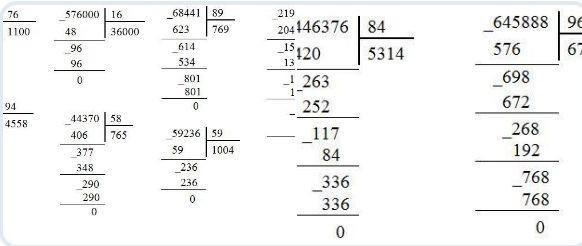 6 Вычисли с проверкой. 83 600:76 576 000:16 68 441:89 219 368:68 428 452:94 44 370:58 59 236:59 446 376:84 645 888:96