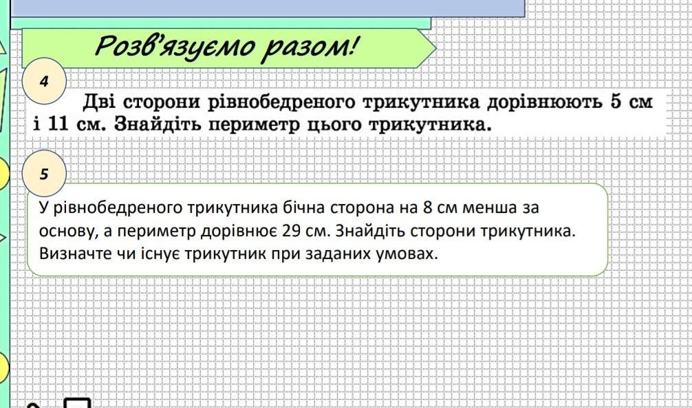 (могло бути два випадки, оскільки не вказано довжини яких сторін дано, але через нерівність тр-ка бічна не може бути 5 см (5 + 5 < 11))