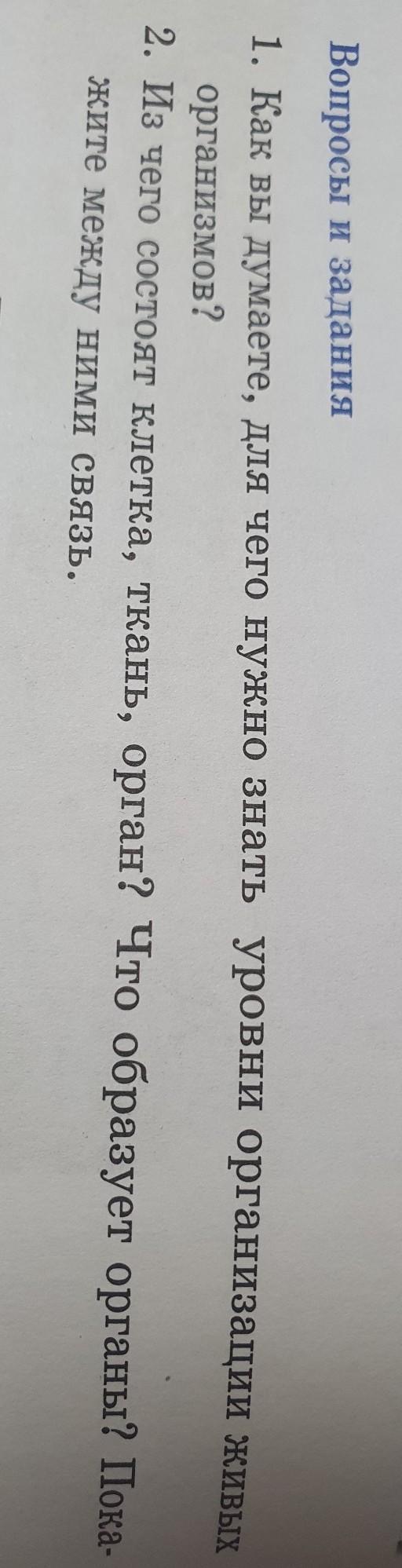 Вопросы и задания 1. Как вы думаете, для чего нужно знать уровни организации живых организмов, 2. Из чего состоят клетка, ткань, орган? Что образует органы? Пока- жите между ними связь.