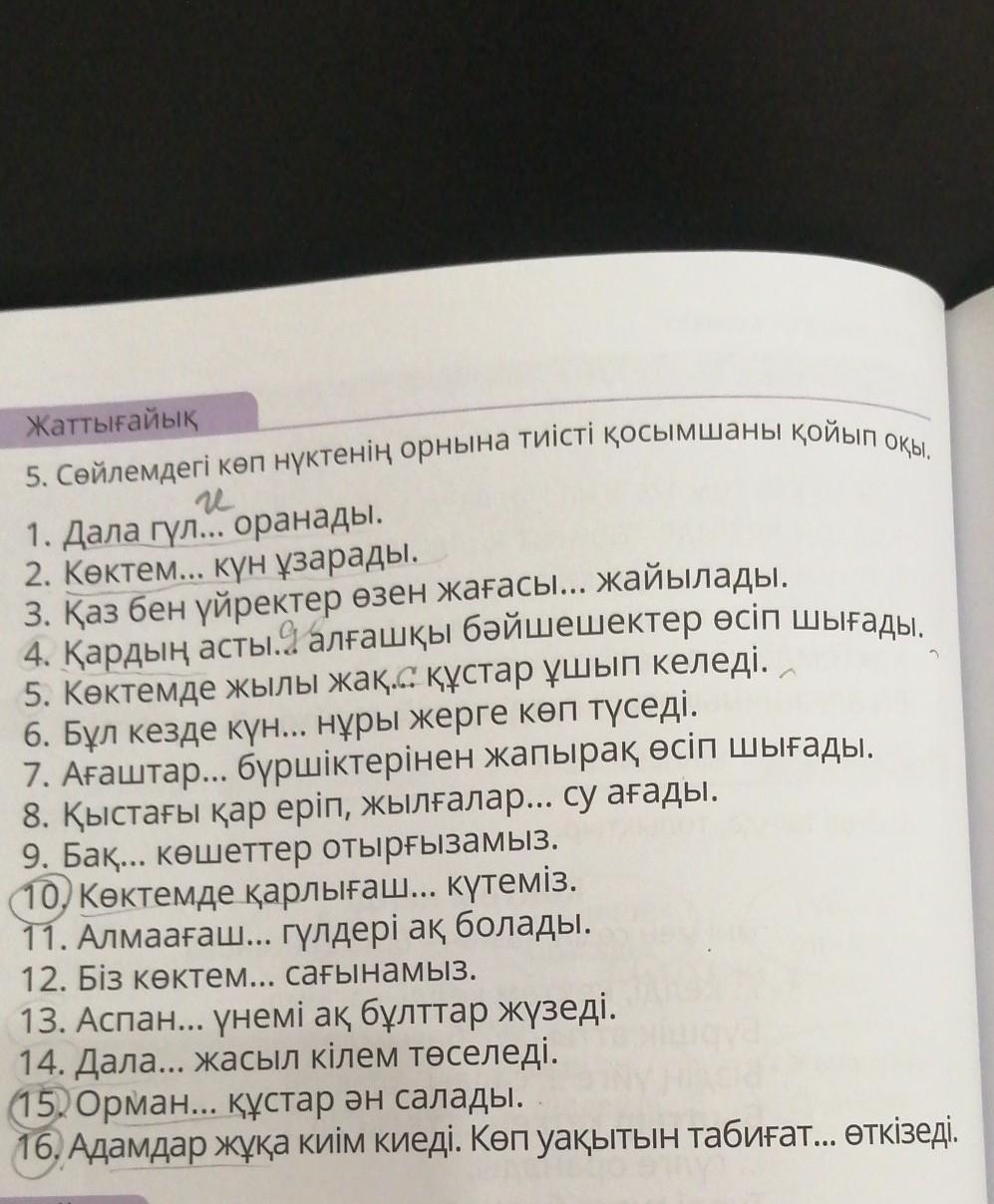 Жаттығайық 5. Сөйлемдегі көп нүктенің орнына тиісті қосымшаны қойып ОҚЫ.Помогите срочноооо
