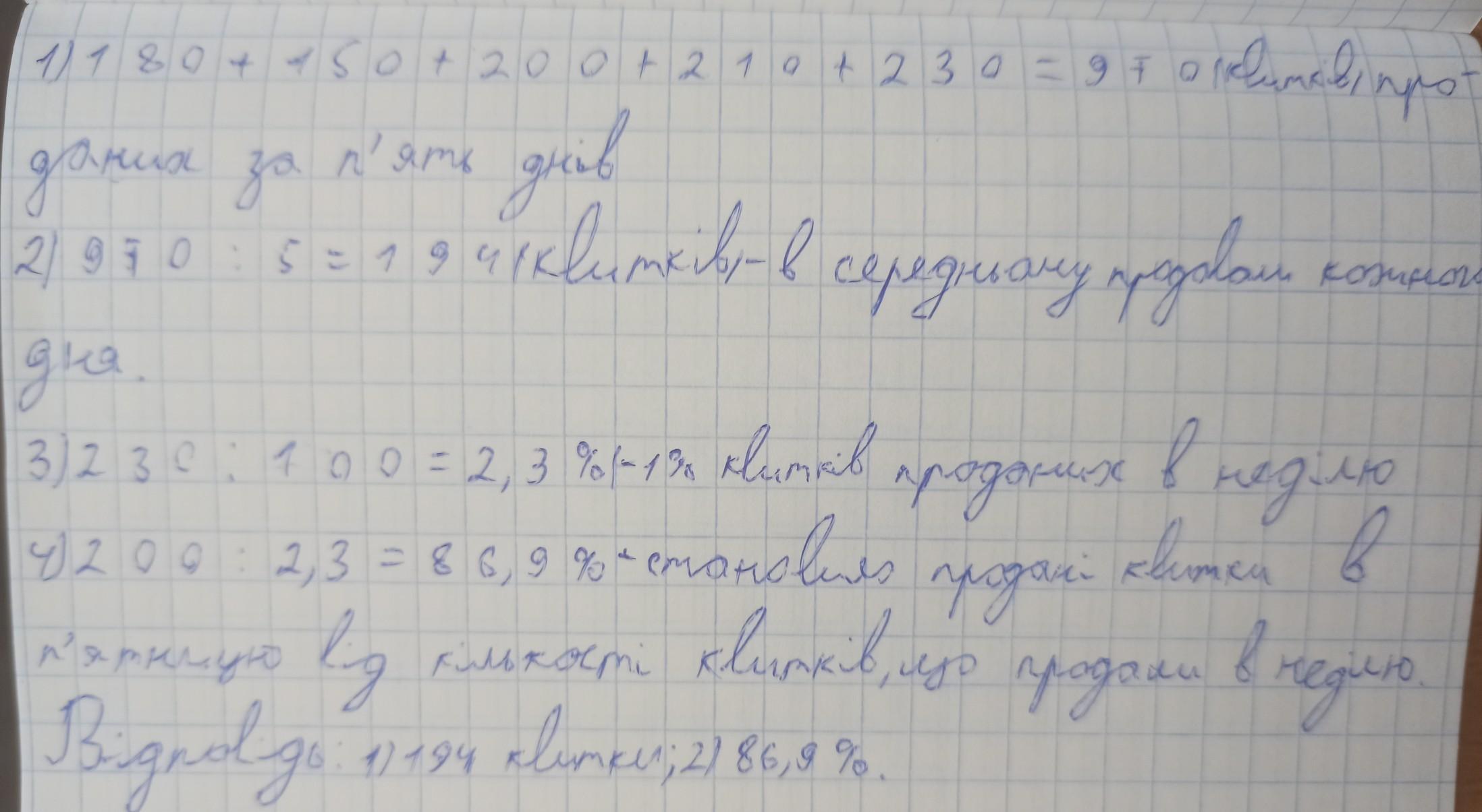 1)194 квитки;2)86,9%.