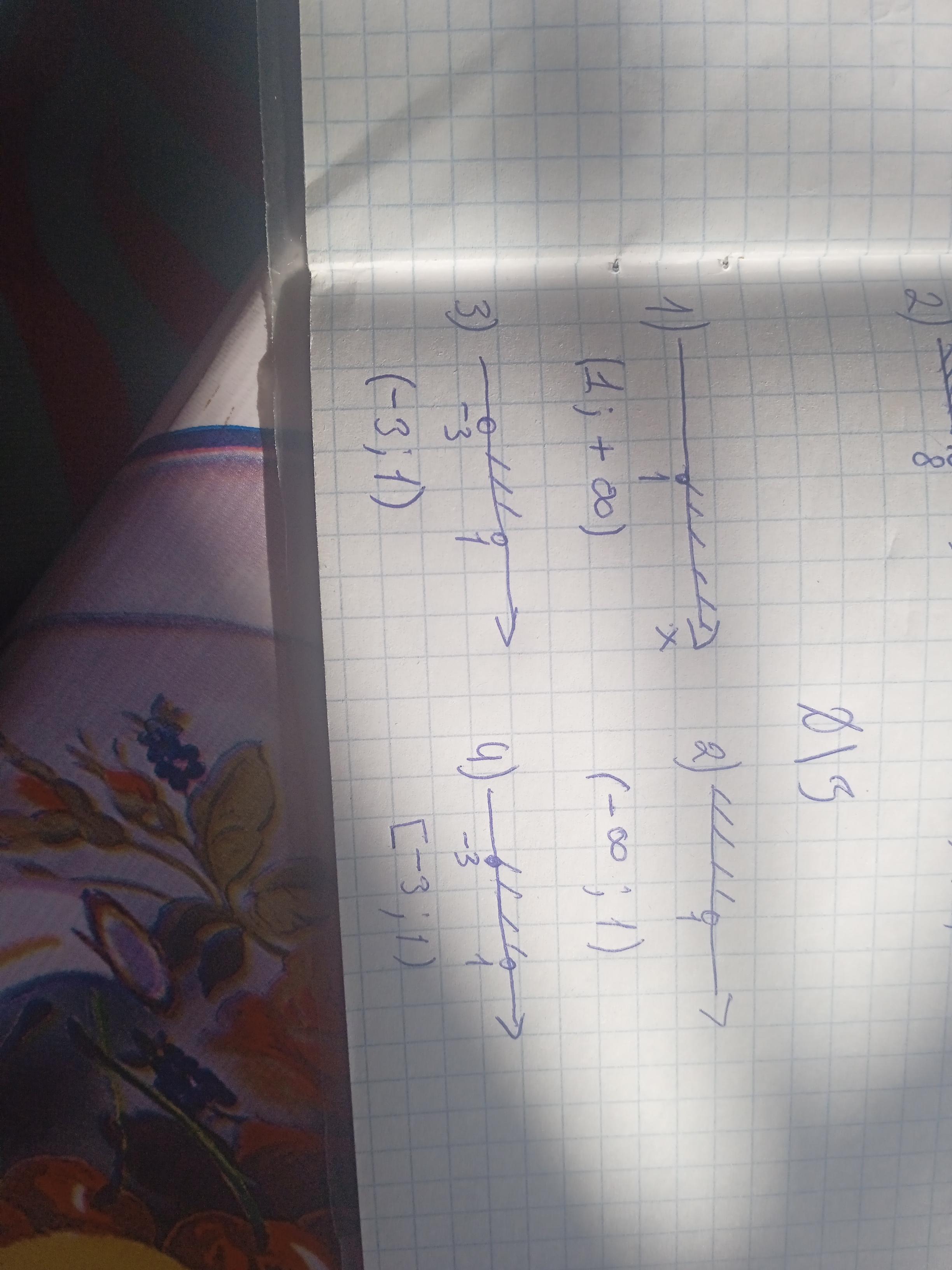 ловой открытый луч; 3) числовой отрезок; 4) числовой интер-