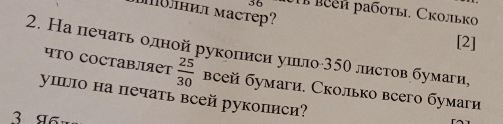 олько [2] 2. На печать одной рукописи ушло 350 листов бумаги, 25 что составляет ушло на печать всей рукописи? 30 всей бумаги. Сколько всего бумаги 3 96.