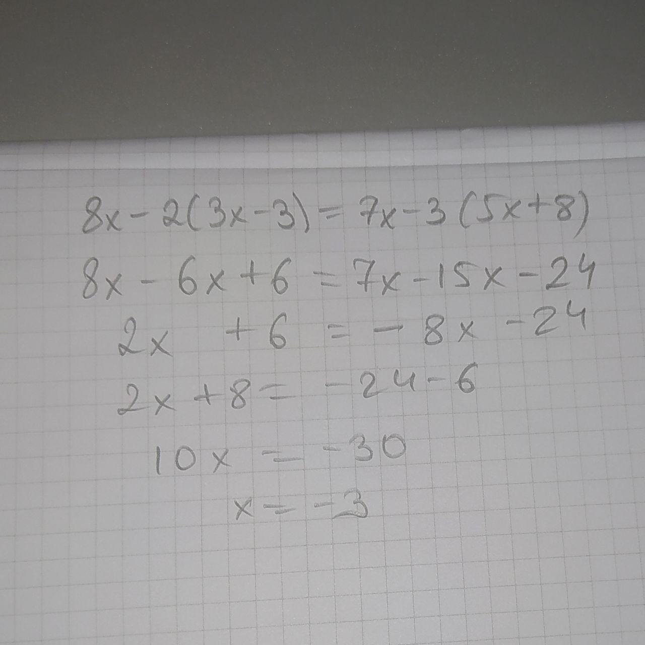 8х - 2(3х - 3) = 7х - 3(5х + 8)