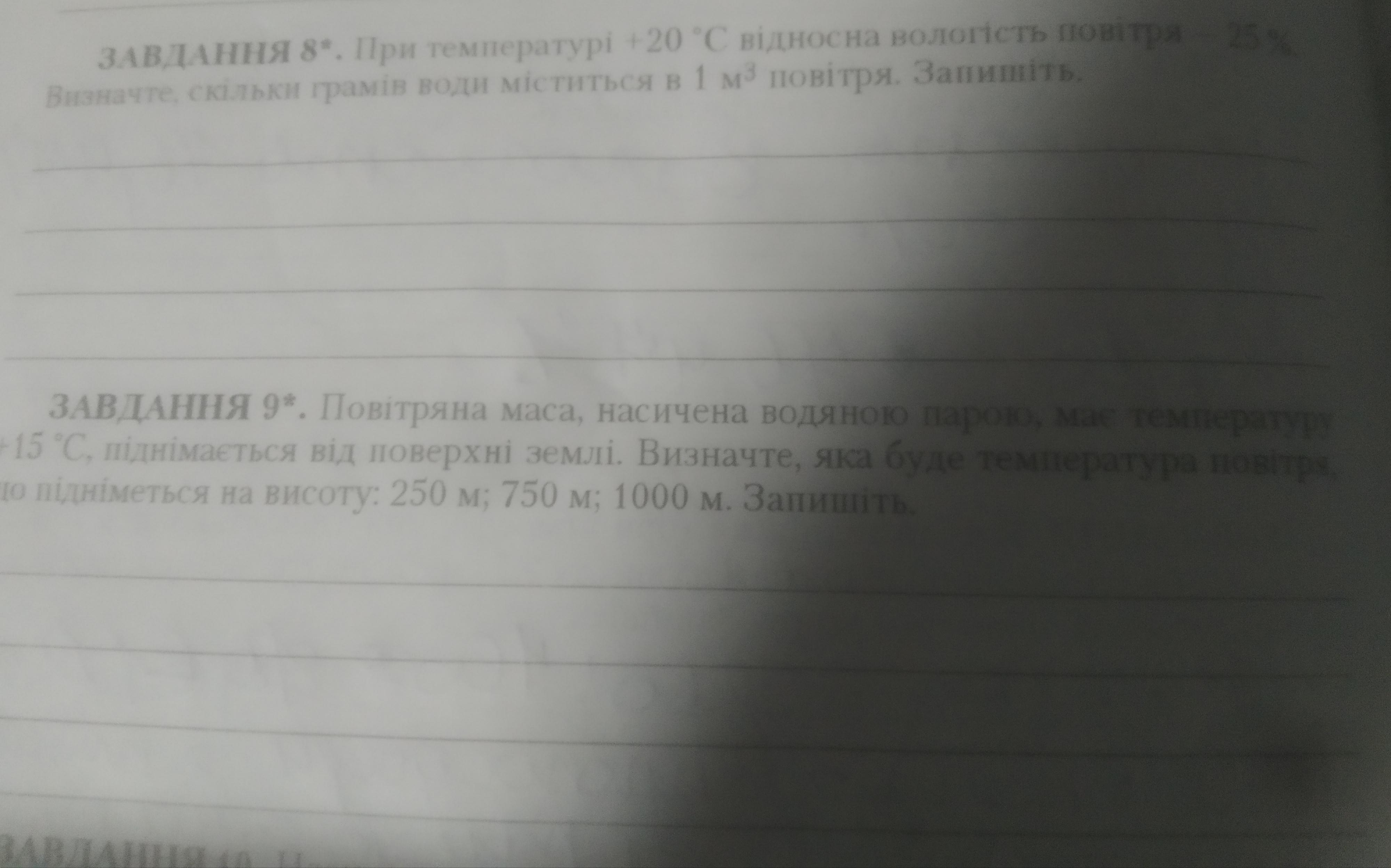 задача 8: відносна вологість повітря – це відношення тієї кількості водяної пари, що є в повітрі, до можливої при даній температурі, виражене у відсотках. Отже, 25/1 × 100% = 25%