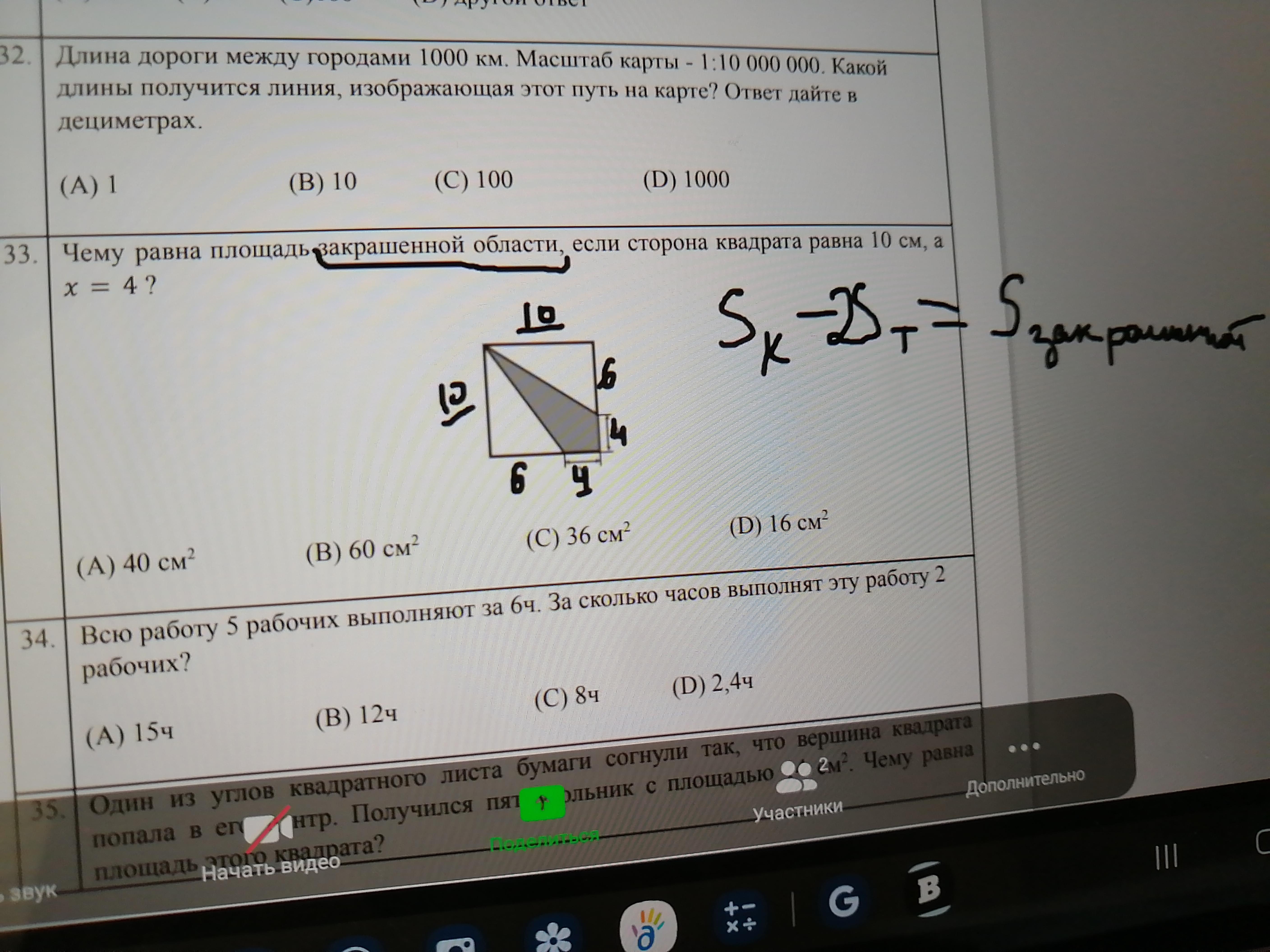 теперь отнимем от всей площади незакрашенную 100-60=40