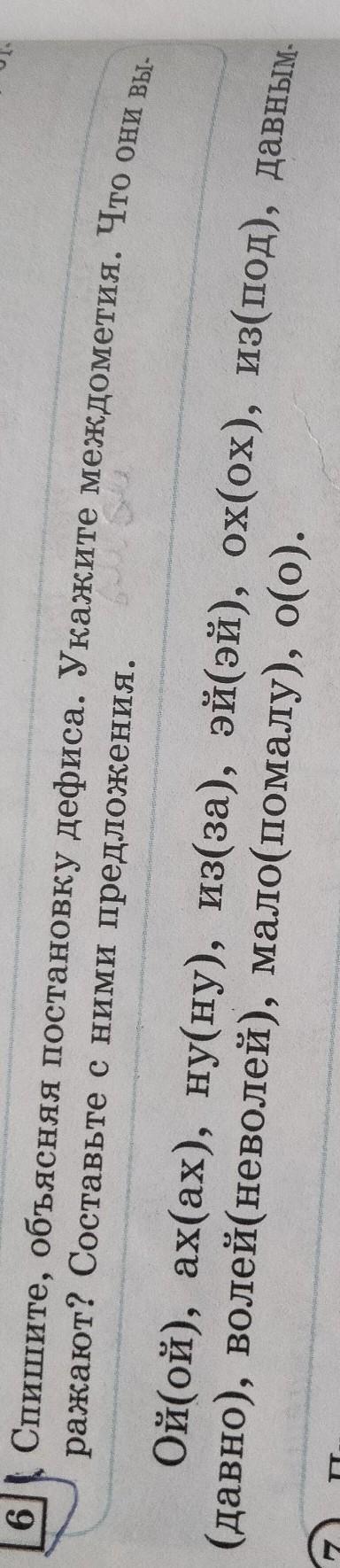Спишите обьясняя постановку дефиса.Укажите междометия. Ой(ой)....