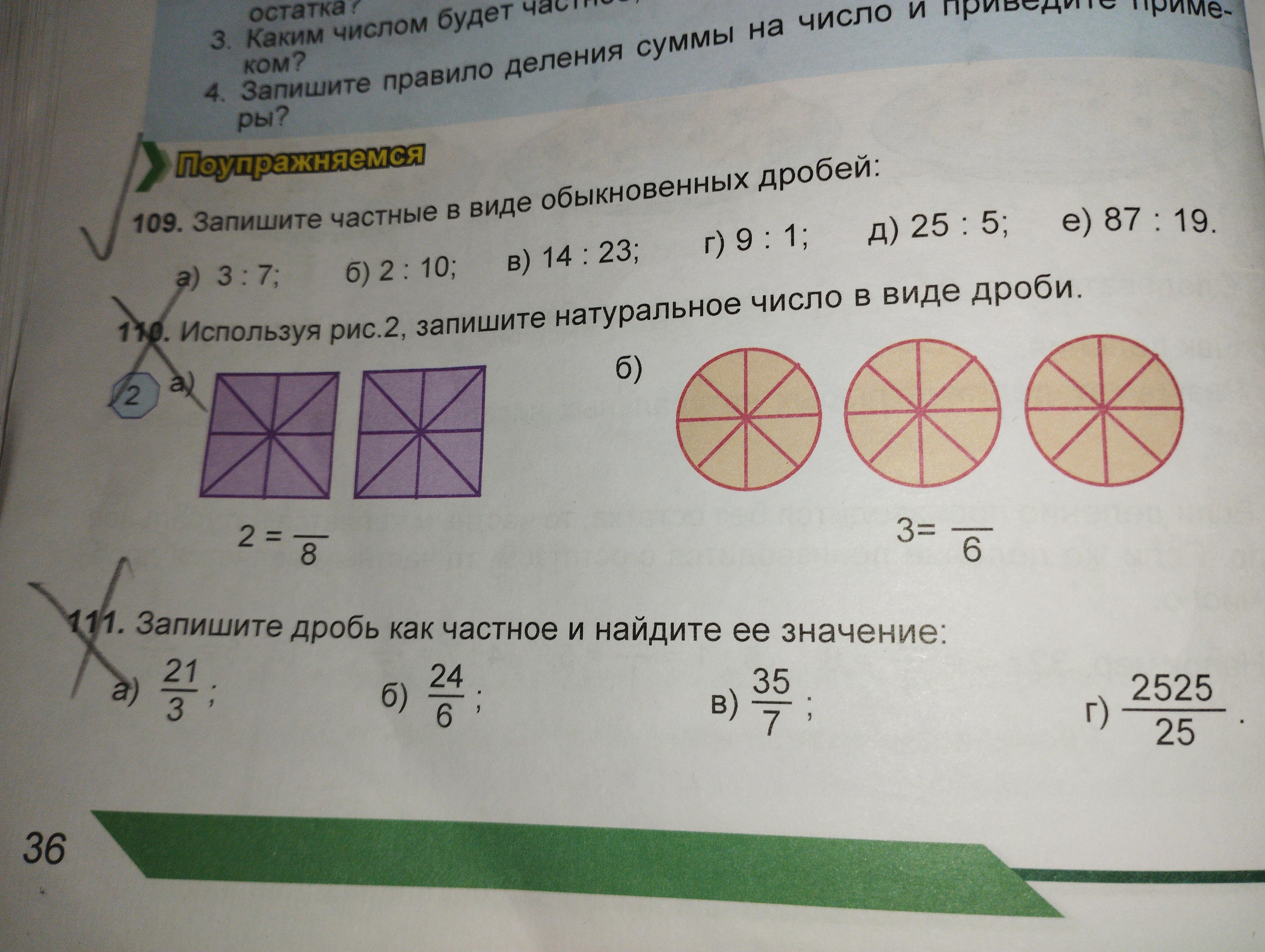 111 номер: а)21/3=7 б)24/6=4 в)35/7=5 г)2525/25=101