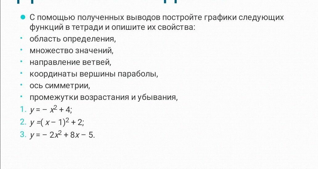 6)возрастает от-беск. до 2;убывает от 2 до +беск.
