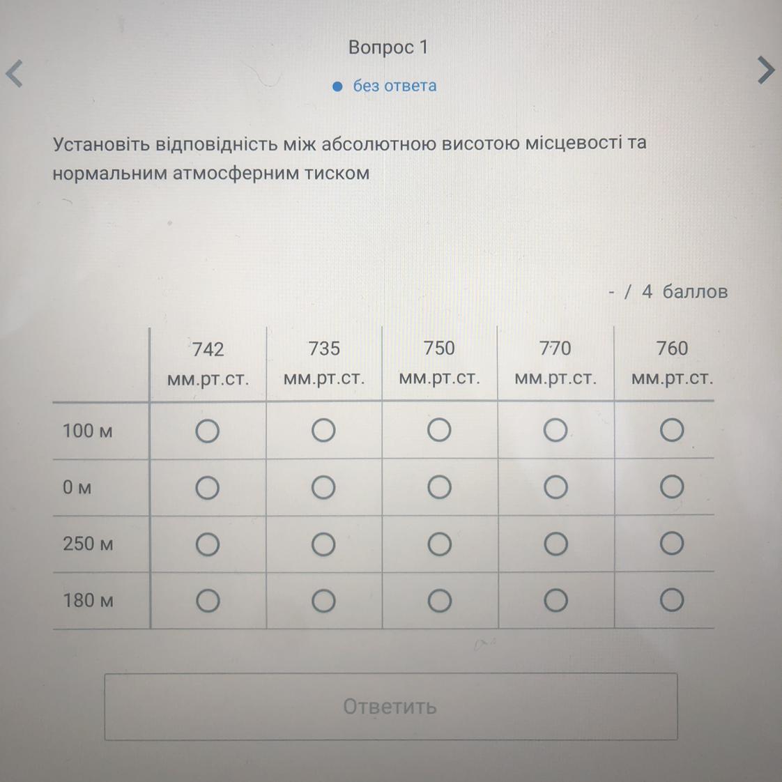 180 м - 742 мм. рт. ст. (760 - (180 : 10) = 742