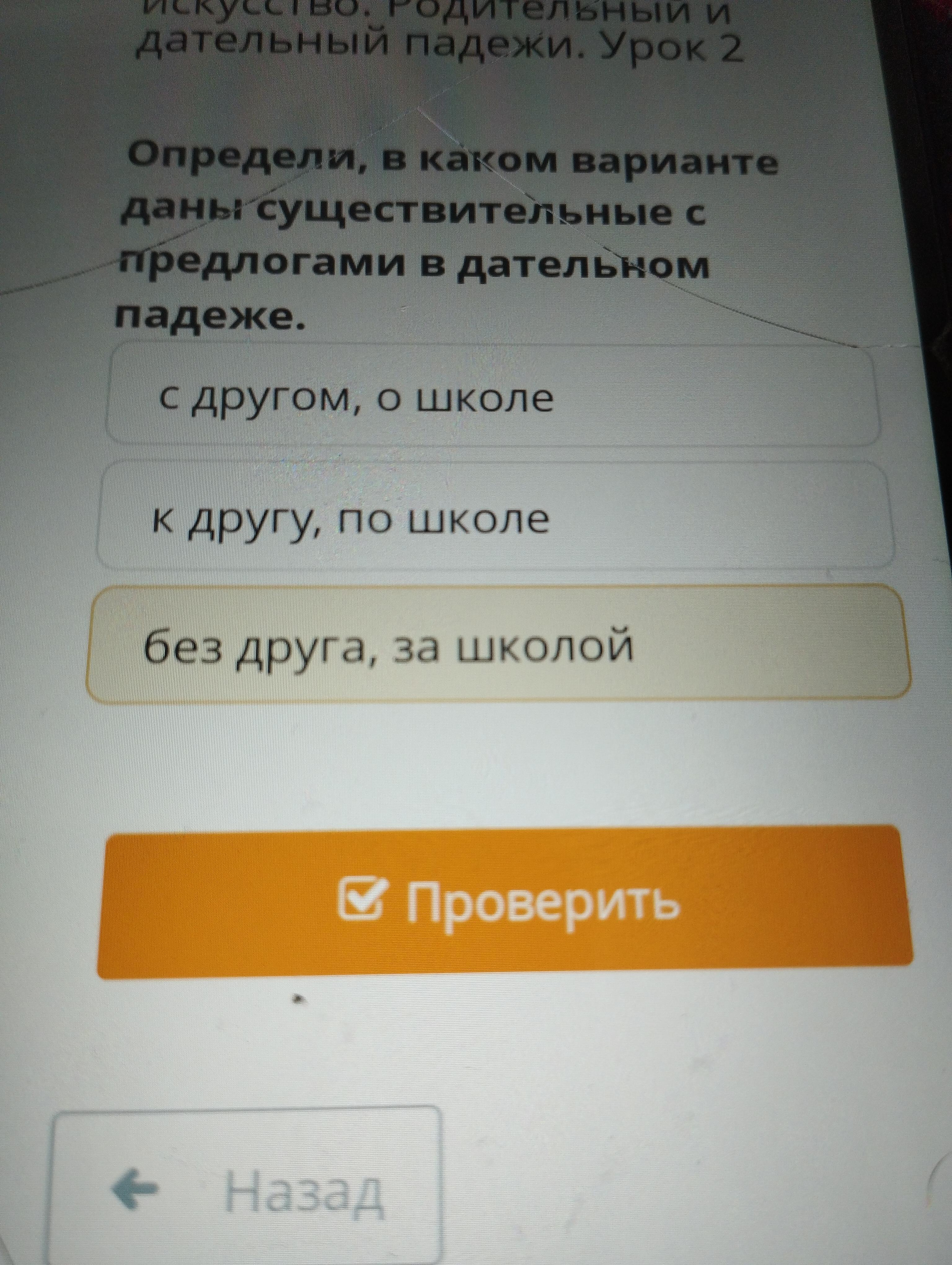 Определи в каком варианте даны существительные с предлогами в дательном падеже.
