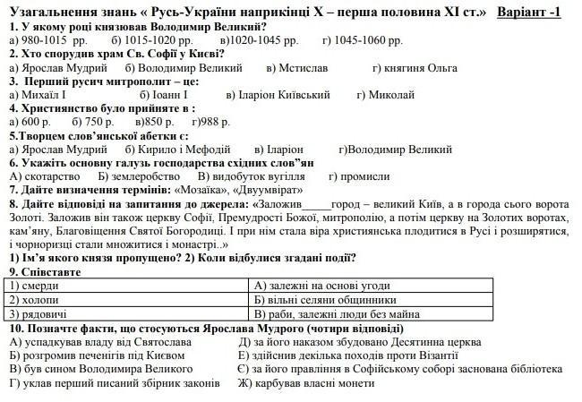 Узагальнення знань «Русь-України наприкінці X – перша половина XI ст.»