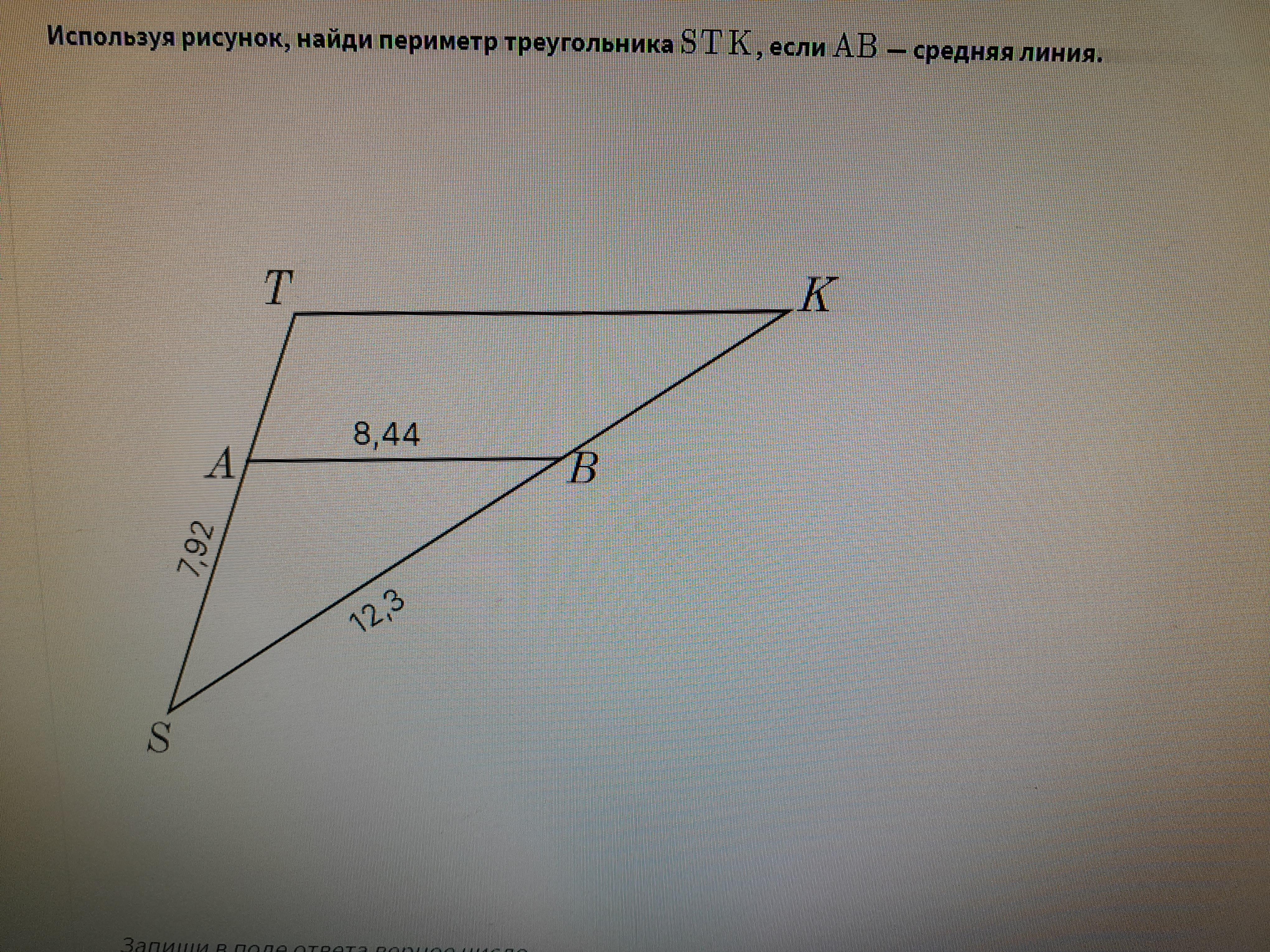 Используя рисунок, найди периметр треугольника STK, если AB- средняя линия. ПОМОГИТЕ ПОЖАЛУЙСТА