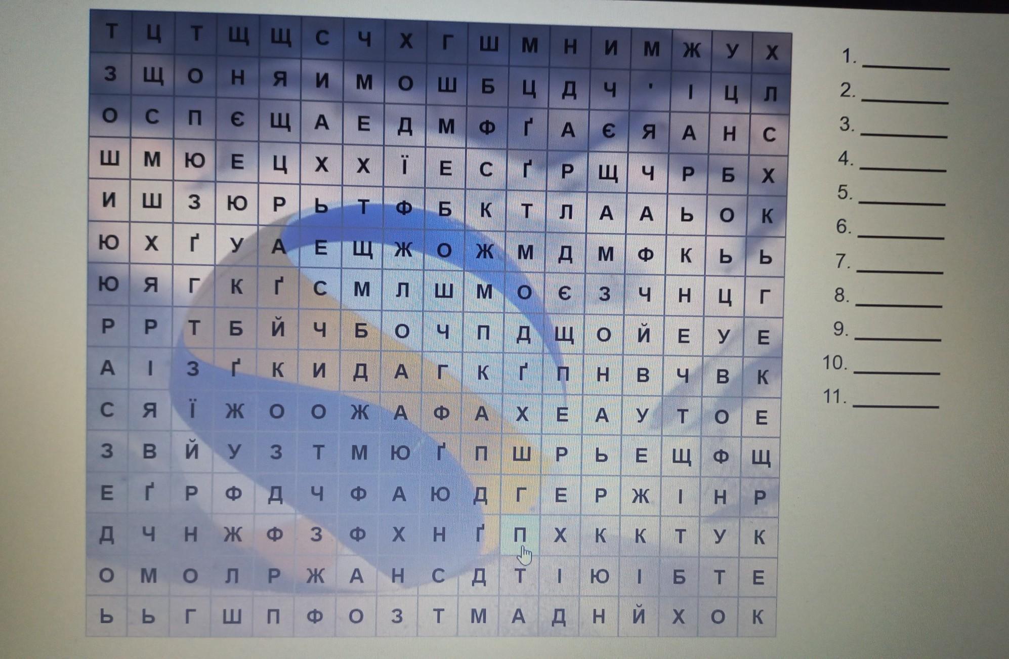 Допоможіть з кросвордом на тему волейбол Обведіть 12 слів на тему волейбол
