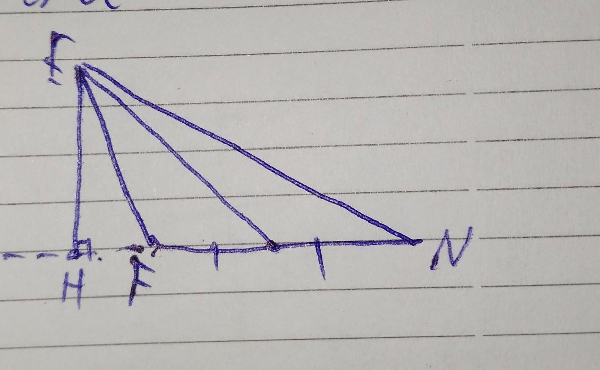 Накресліть тупокутний трикутник ЕFN з тупим кутом F. За допомогою кутника і лінійки з поділками проведіть висоту ЕН і медіану ЕМ цього трикутника.
