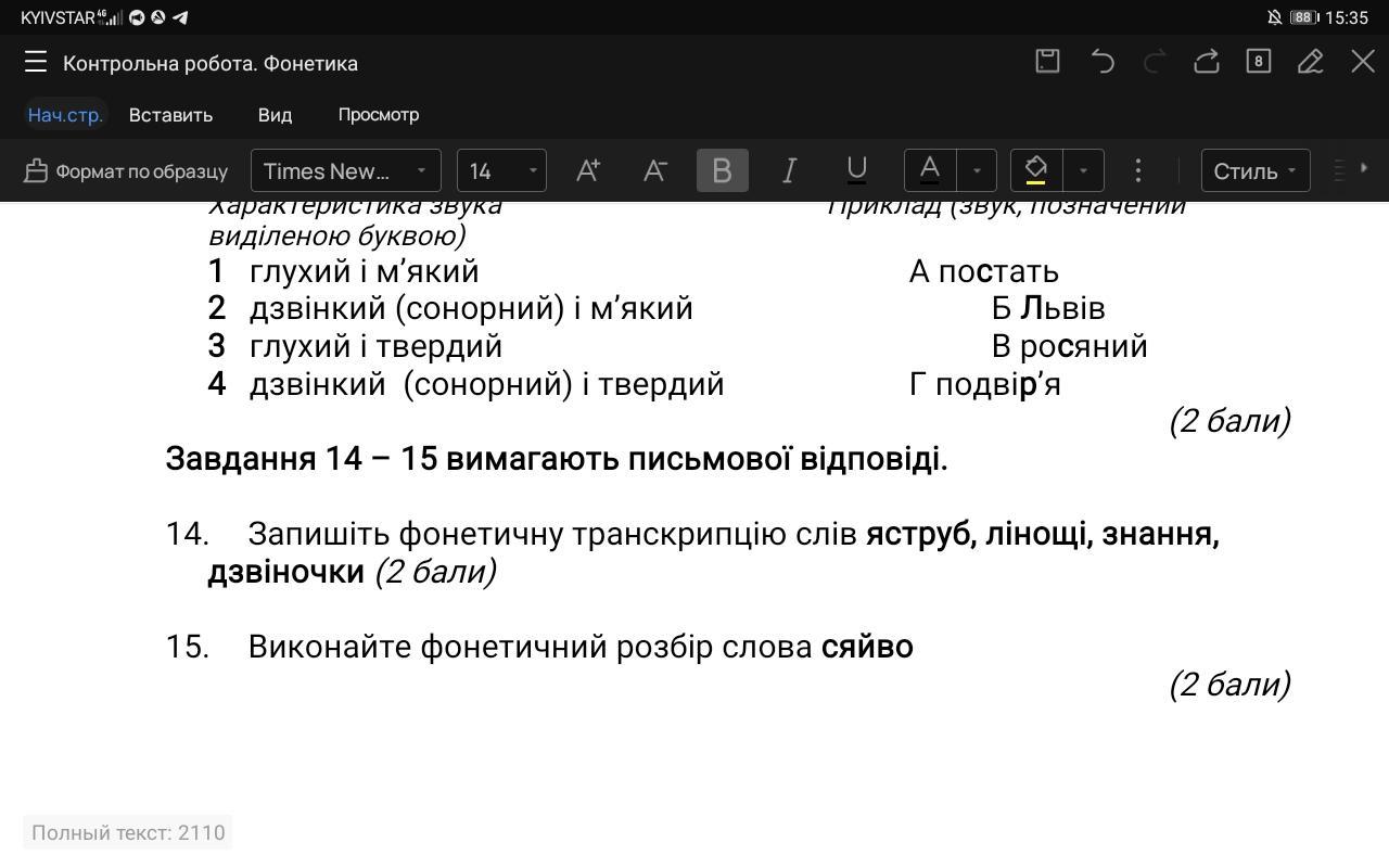 Допоможіть будьласка 14 і 15 завдання я не дуже розбираюсь у фонетичній транскрипції та у фонетичному розборі слова.