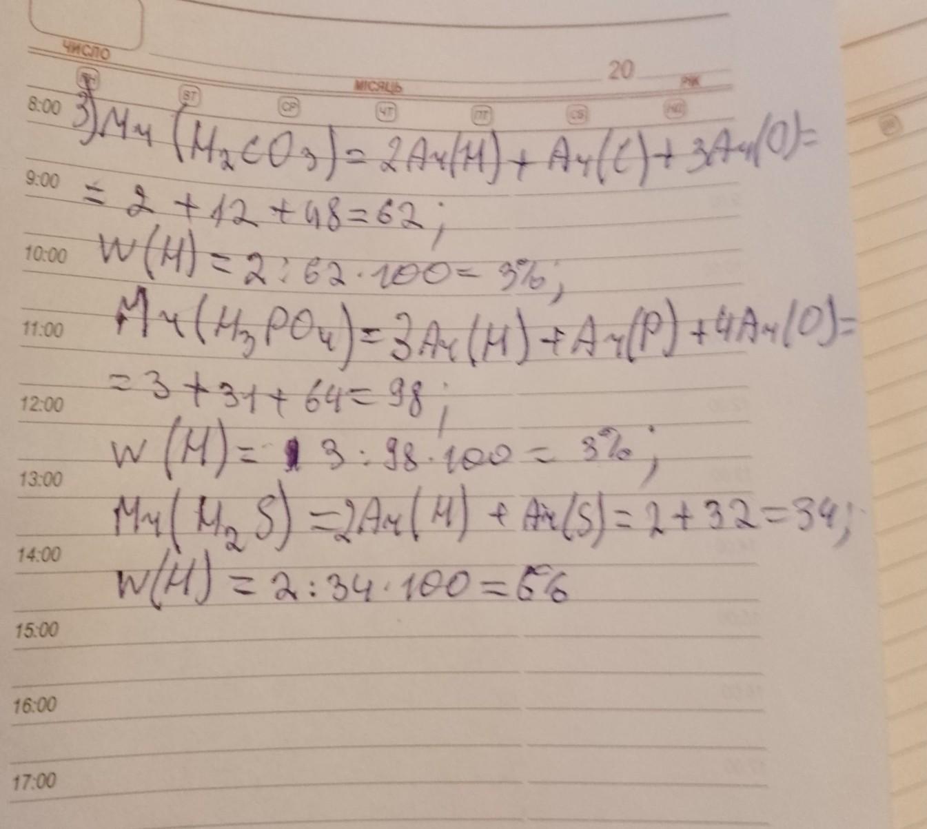 3. Обчислити масову частку гідрогену в наступних сполуках:
