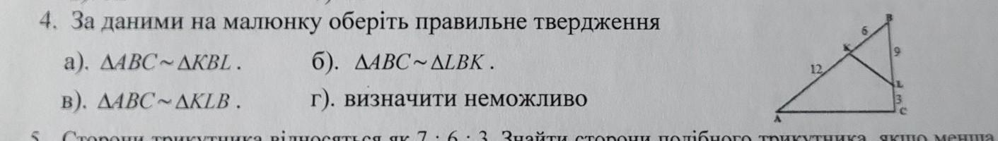 відповідь трикутник АВС ~ трикутнику LBK