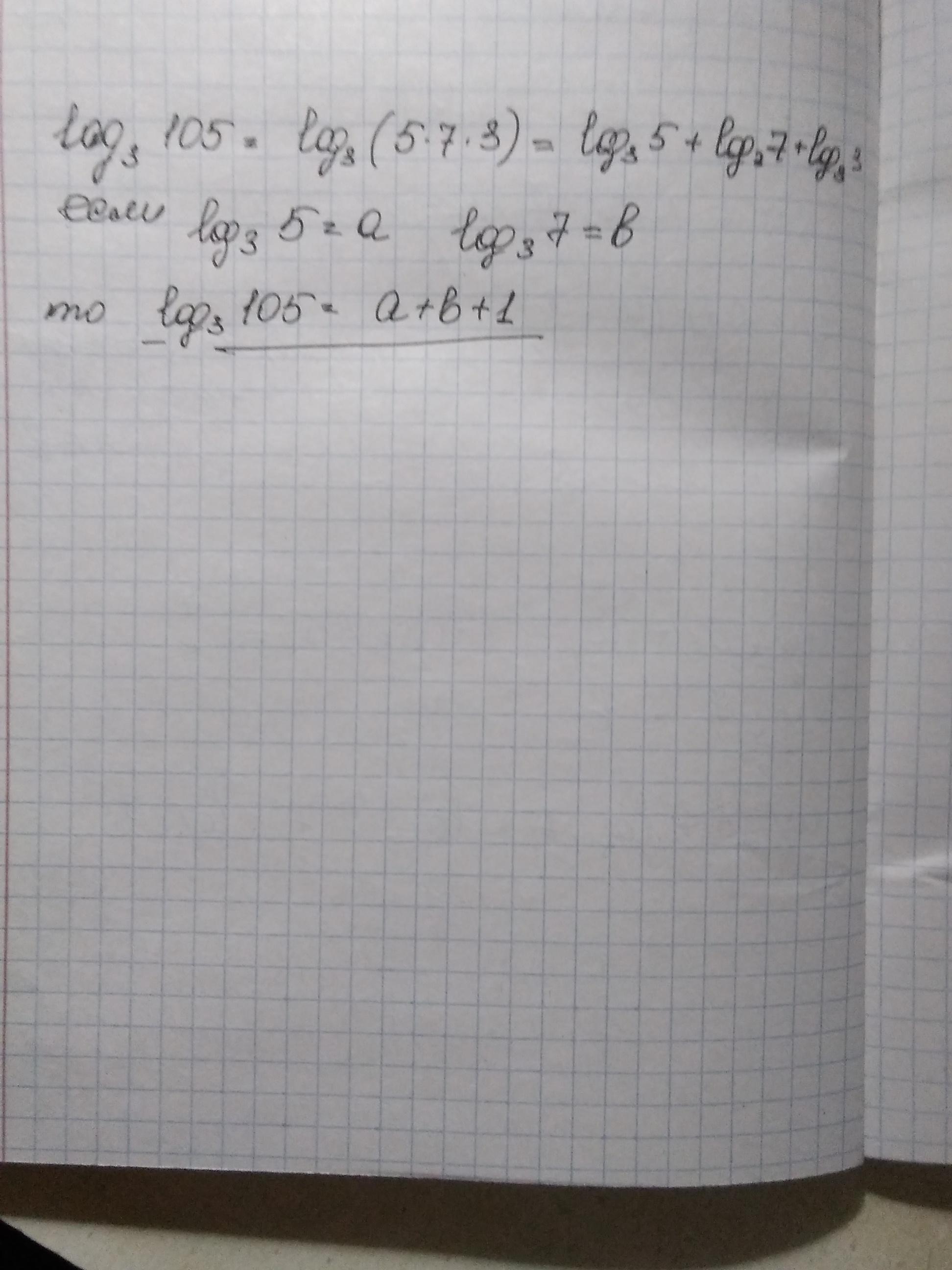 Відомо що log3(5)=a і log3(7)=b, знайдіть log3(105)