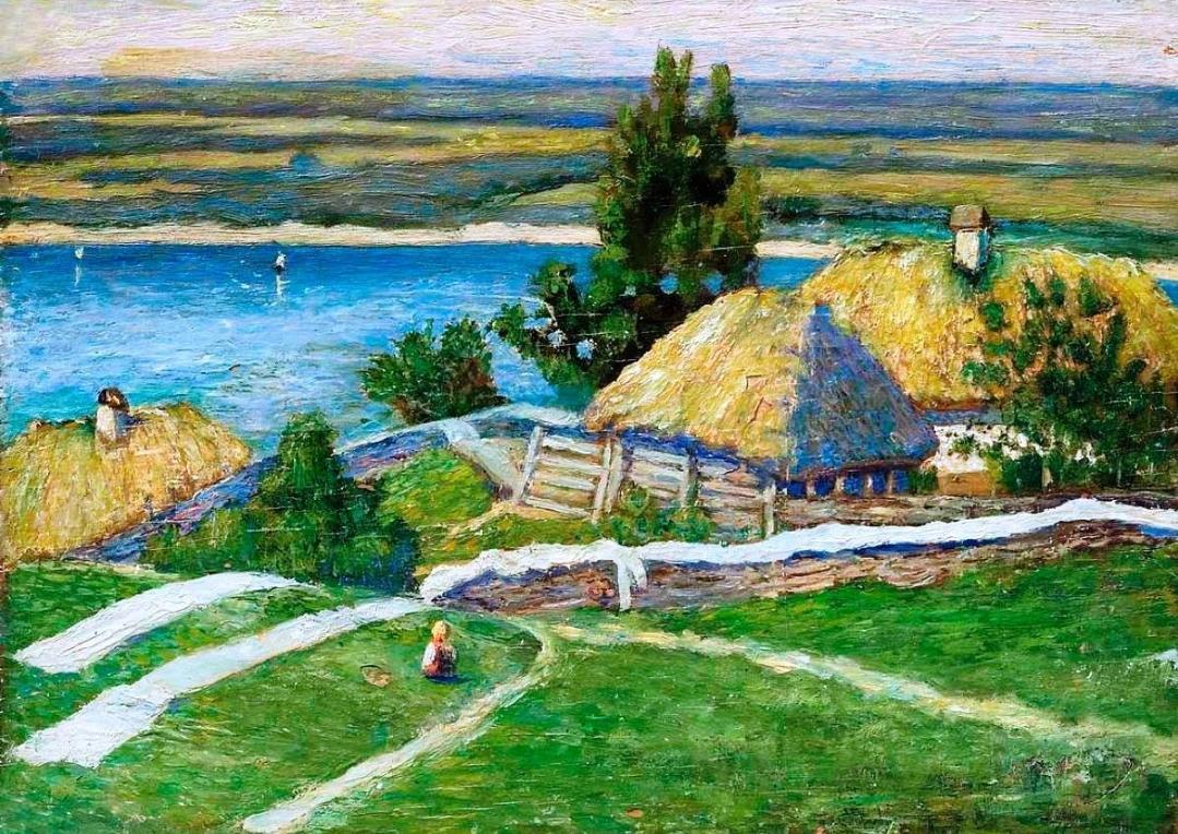 Прекрасна зелена трава що спускається з пагорба йде до великого мов би скляного озера на берегу якого стоять дерев´яні хатки. Дівчинка задумано дивиться в даль милуючись прекрасним краєвидом. Дерева додають краси цій картині а стежки ведуть тебе до прекрасних галявин.