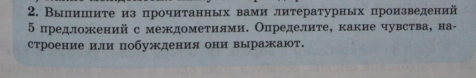 2. Выпишите из прочитанных вами литературных 5 предложений с междометиами. Определите, ч строение или побуждения они врат