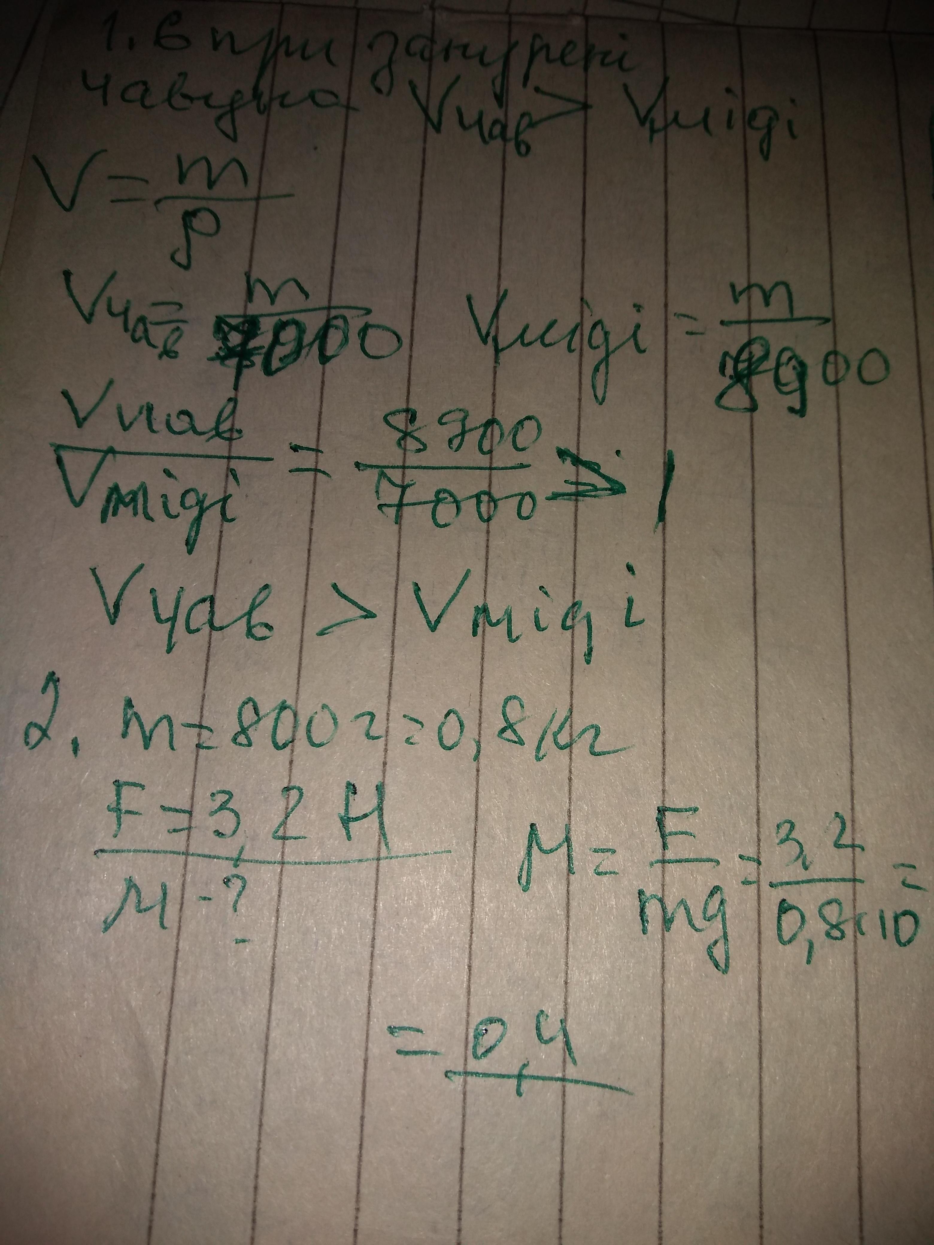 під час повного занурення мiдного бруска чи чавунного? Уважай, що маси