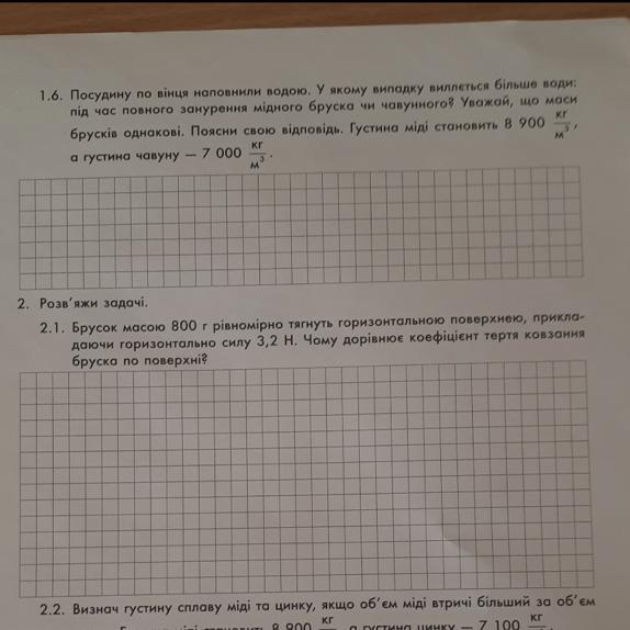 брусків однакові. Поясни свою відповідь. Густина мiдi становить 8 900