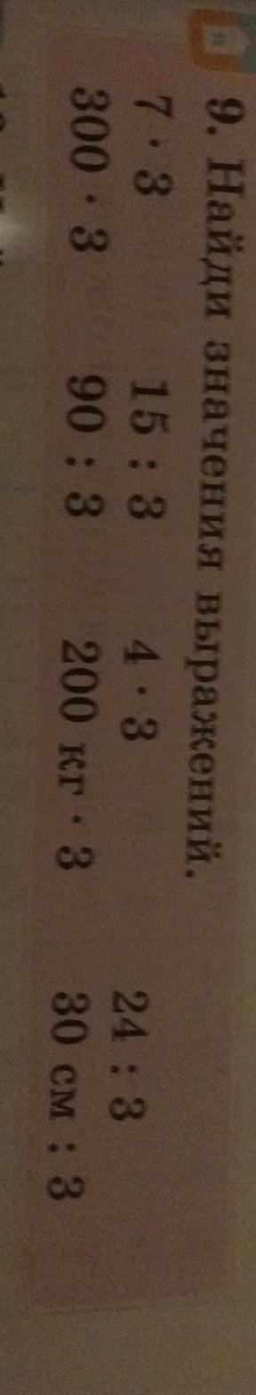 7×3=21 24:3=8 4х3=12 300×3=900 90÷3=30 15÷3=5 30см÷3= 10см 200кг×3=600кг