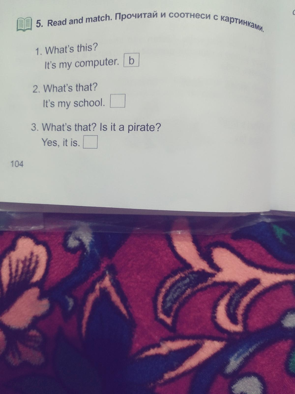 Посмотри где нарисована картина школы , и поставь букву ( которая указана на картинке) в квадратик , как в первом примере , а в третьем нужно пирата найти на картинке и указать также букву