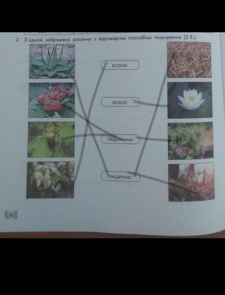 2. З'єднай зображену рослину з відповідним способом поширення (2 б.). вітром водою тваринами людиною. плиз безумно срочно даю 40 балов