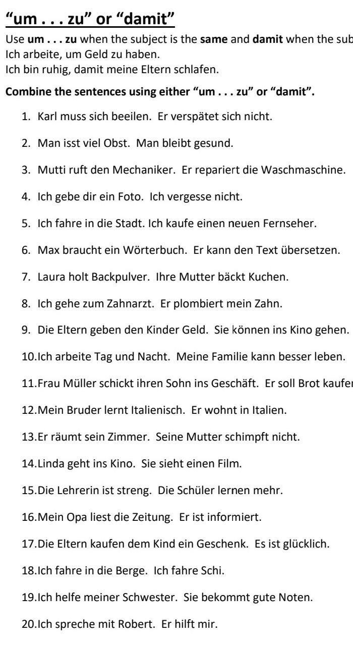 19. Ich helfe meiner Schwester, damit sie gute Noten schreibt.