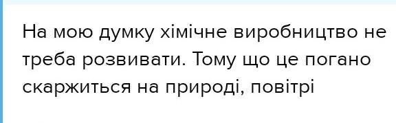 Дайте письмову відповідь на запитання: Які види хімічного виробництва, на вашу думку, слід розвивати прискореними темпами в Україні? Поясніть чому.
