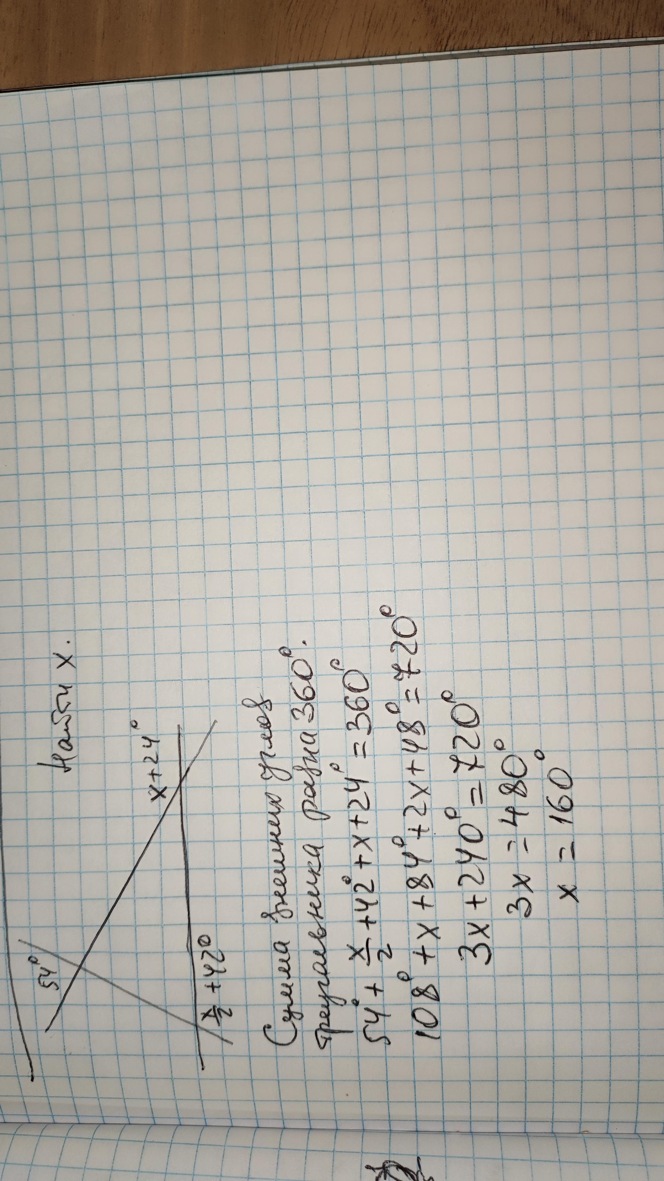 Спасибо за ваше потраченое время, но ответ не верный, сумма двух углов не может быть больше 180 градусов . X = 112